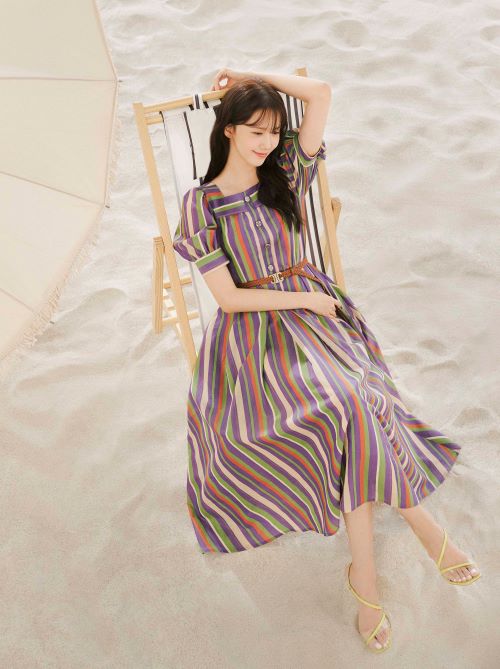 공개된 화보 속 임윤아는 시어한 소재에 움직임에 따라 우아한 실루엣을 연출하는 핑크 니트 세업 스타일로 사랑스러운 휴양지 룩을 연출하였으며 산뜻한 컬러 스트라이프 패턴을 베이스로 스퀘어 넥 라인과 퍼프 슬리브 디테일을 더해 편안하고 캐주얼한 무드의 원피스 스타일링을 선보였다.
