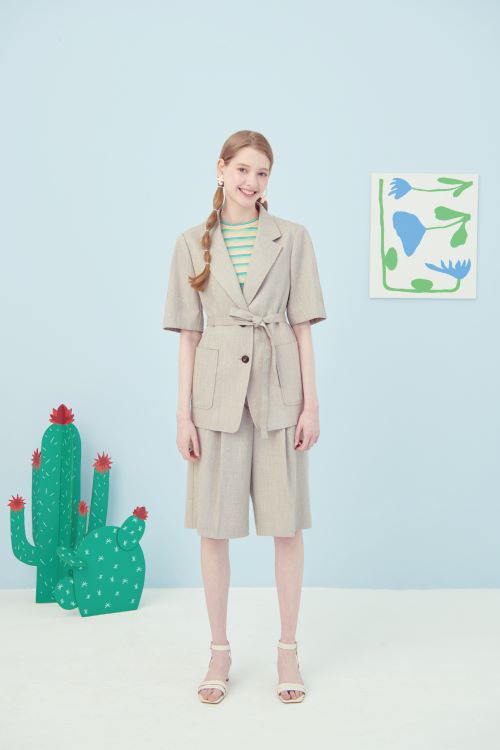 첫 번째 화보에서는 빅 포켓과 벨트 디테일의 린넨 자켓과 버뮤다 스타일 린넨 핀턱 팬츠로 린넨 소재 셋업 아이템을 소개했다. 과하지 않은 오버핏으로 일상룩 뿐만 아니라 출근룩으로도 손색 없는 스타일로 스트라이프 컬러 티셔츠와 함께 캐주얼하게 연출 가능하다.