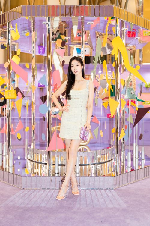 신세경이 선보인 스타일링도 눈길을 끌었다. 신세경은 옐로우 컬러의 미니 원피스에 부케 스트라스 버클이 돋보이는 로저 비비에의 마이크로 백을 매치해 화사하면서도 우아한 룩을 선보였다.