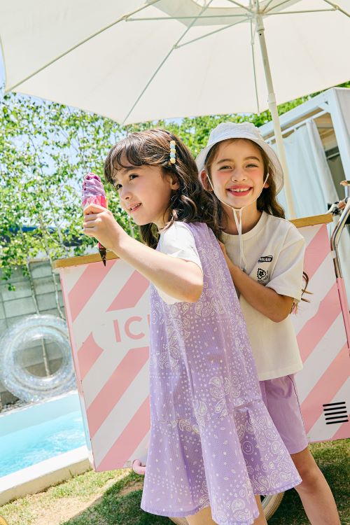 화보 속 이번 컬렉션은 아이들이 여유롭고 즐거운 바캉스를 즐길 수 있는 휴양지 패션템으로 구성됐다. 원피스, 반소매, 민소매 등 여름 휴양지와 어울리는 시원한 아이템에 아이들 맞춤형 기능성 소재를 적용해 더운 여름에도 쾌적하게 착용할 수 있다.