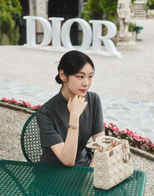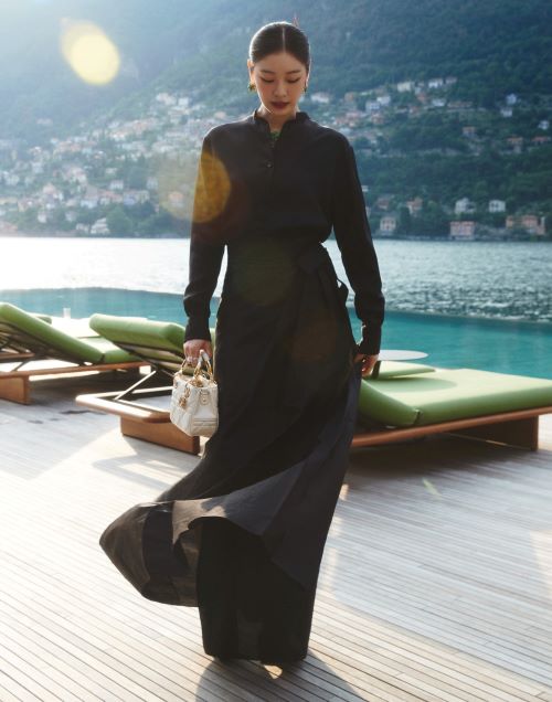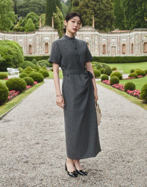 공개된 또 다른 컷에서는 그레이 드레이프 드레스와 함께 장미 줄기, 꽃봉오리에서 영감을 받은 BOIS DE ROSE 브레이슬릿, ROSE DIOR COUTURE 이어링과 링을 매치해 단아한 매력을 뽐냈다.