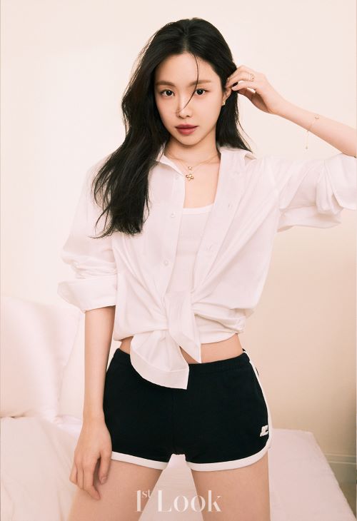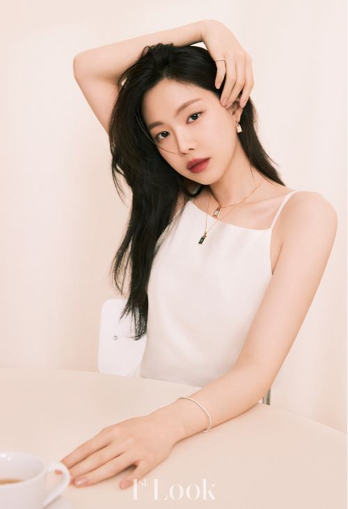 다른 화보 속 손나은은 내추럴한 화이트 슬리브리스 탑과 진에 듀이터널스 제품을 착용하여 자연스러운 무드를 선보였다. 듀이터널스는 ‘골든듀’ 시그너처 디자인 이슬방울이 360도 이어져있는 디자인으로 움직임에 따라 다채로운 광택감을 선사한다. 귀고리, 반지, 펜던트, 팔찌로구성되어 있으며 특히 서로 다른 사이즈의 펜던트를 같이 레이어링하면 한층 더 스타일리쉬한 연출이 가능하다.