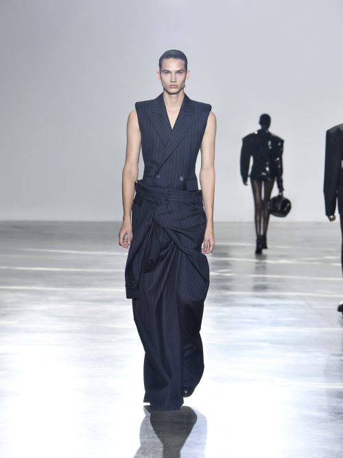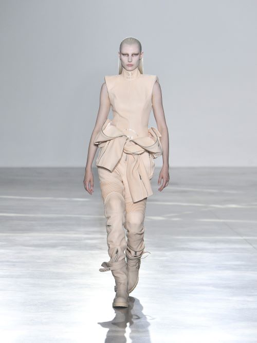 ‘준지’는 이번 시즌 테마를 ‘SKIN’으로 잡고 콘트라스트의 아름다움을 선보였다. 마치 몸을 연상시키는 스키니한 실루엣의 옷들과 비틀어지거나 과장된 볼륨의 아이템을 믹스해 실루엣의 대비를 극대화했다.