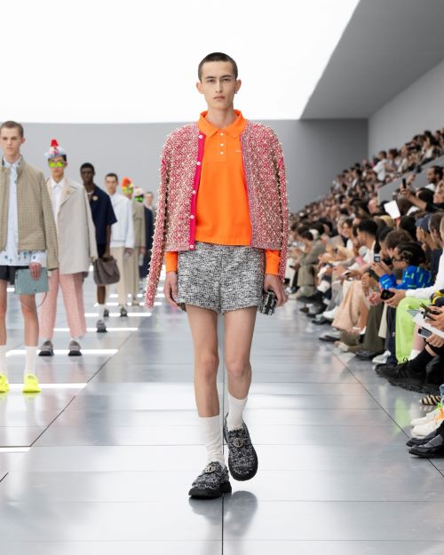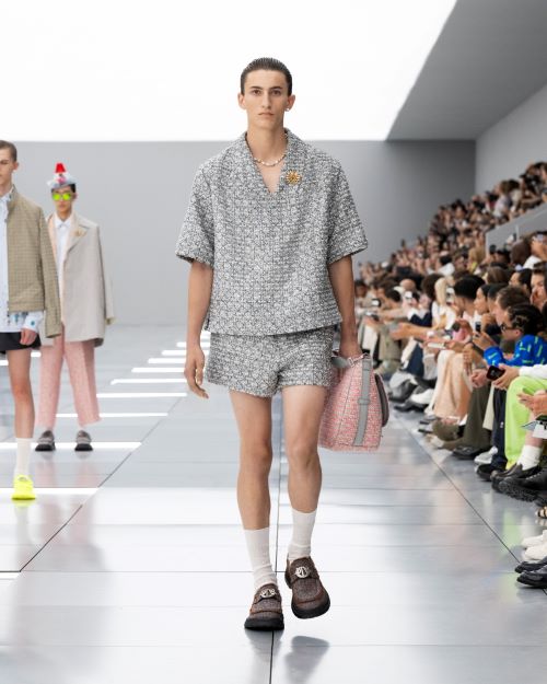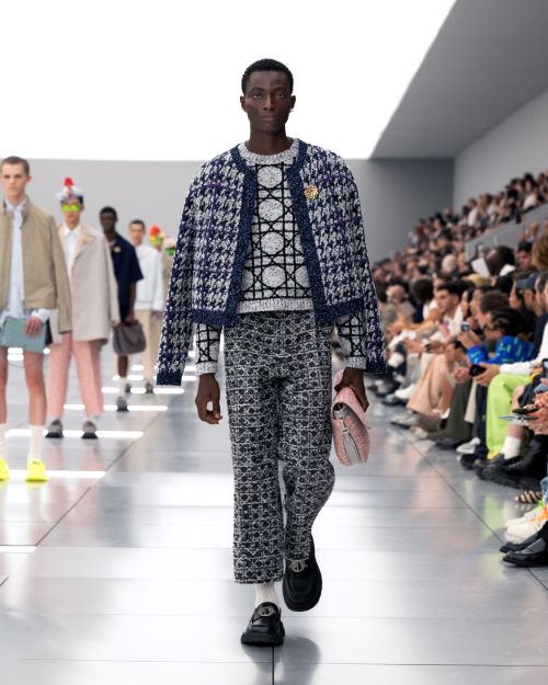 해링턴, 폴로 셔츠, 크루넥, 카디건 등 남성복의 원형과도 같은 아이템은 ‘디올’의 시대와 스타일을 넘나드는 상징적인 기법인 트위드, 자수, 까나쥬와 만나 특별한 룩으로 거듭났다. 또한 다양한 형태, 컬러, 텍스처로 완성된 백은 화려한 매력과 절제된 감성을 동시에 선사하며 전체 룩에 풍성한 매력을 더해주었다.