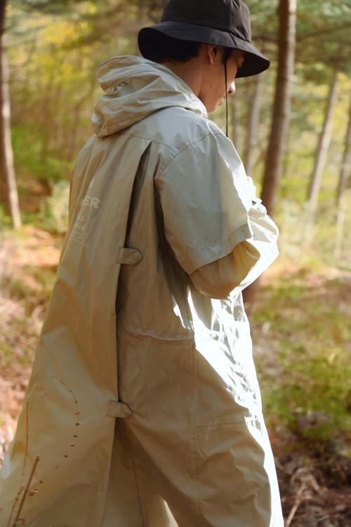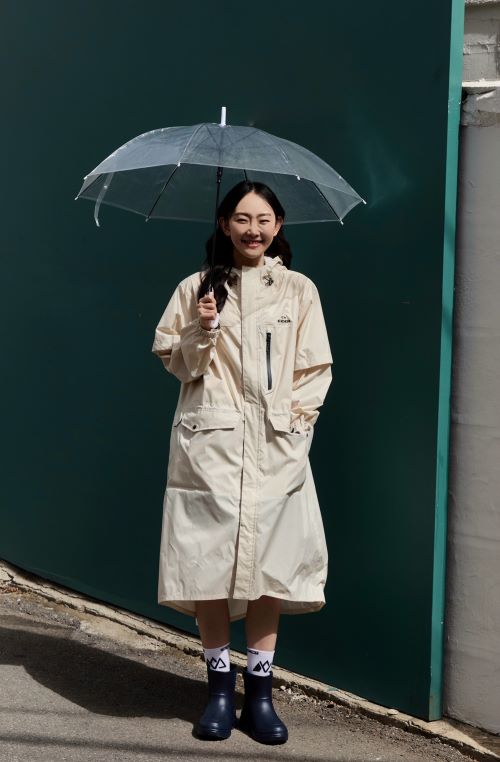 하이킹, 트레킹, 우중산행 등 장시간 아웃도어 활동 시 착용하기 좋은 아웃도어 코트형 레인코트는 소매 부분 탈부착이 가능하여 날씨가 급변하는 여름철, 다양한 외부 상황에 따라 스타일의 변화를 줄 수 있다. 뒤판 절개가 있어 중형 이하의 배낭을 착용한 상태에서도 손쉽게 입고 벗을 수 있다. 내구성이 강한 경량 70D 나일론 소재가 사용되어 다양한 움직임을 필요로 하는 아웃도어 활동을 즐길 때 제격이다.