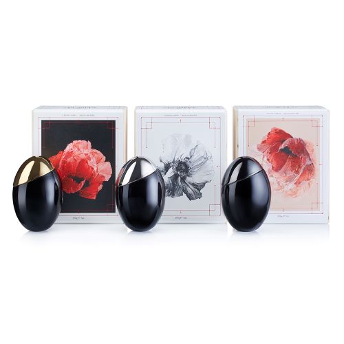 달걀 모양의 블랙 래커 유리 바디와 실버, 다크, 골드 색상의 메탈 리드로 이루어진 캔들의 실루엣 역시 컬렉션의 영감인 자연의 서사를 표현한다.