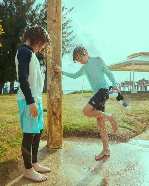여자아이들을 위한 래시가드도 다양하게 준비됐다. 남아들과 공용으로 입을 수 있는 기본 래시가드 상의와 탱크톱, 집업, 쇼츠 등으로 구성돼 골라 입을 수 있다. 세련된 체크, 화사한 플라워 패턴 등을 활용해 아이는 물론 부모들의 심미안까지 만족하는 스윔웨어를 선보인 것.