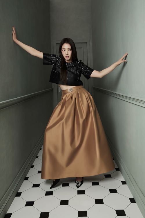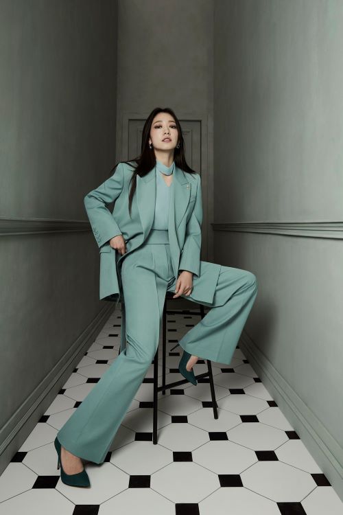 화보 속 박신혜는 고급스러운 컬러감이 돋보이는 우아한 민트 셋업으로 시선을 사로잡았다.