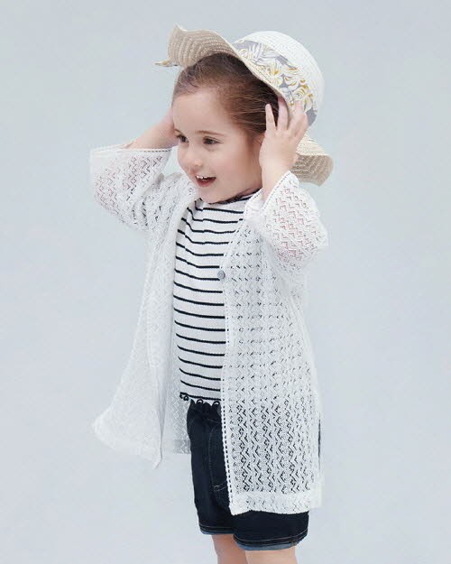 ‘디어베이비’의 하니 레이스로브카디건은 레이스 소재의 로브 스타일 카디건으로 사랑스러운 느낌과 캐주얼한 느낌을 모두 연출할 수 있는 제품이다. 휴가지에서 수영복 위에 레이스로브카디건을 걸치면 스타일리시한 비치웨어로 활용할 수 있다.
