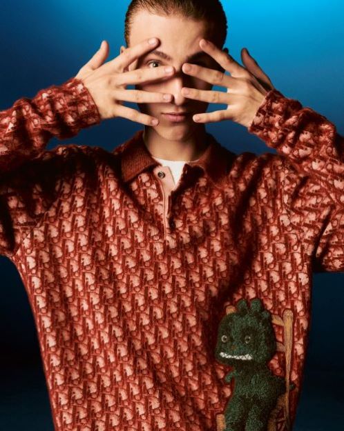 독특한 모티브는 데님 오버셔츠 외에도 생동감 넘치는 버건디 및 핑크 컬러를 입은 디올 하우스의 아이코닉한 DIOR OBLIQUE 패턴에도 등장해 우아한 니트웨어에 화려한 감각을 더해준다.
