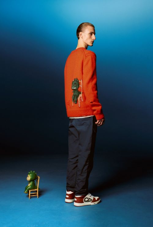 ’DIOR’ 로고에 심볼을 장식한 버전은 후드 스웨트 셔츠와 파우치에도 더해져 예상을 뛰어넘는 놀라움을 선사하며 무슈 디올의 유산을 상징하는 시그니처 ’CHRISTIAN DIOR COUTURE’ 디테일의 패치는 배기 팬츠를 포함한 다양한 모델에 장식되었다.
