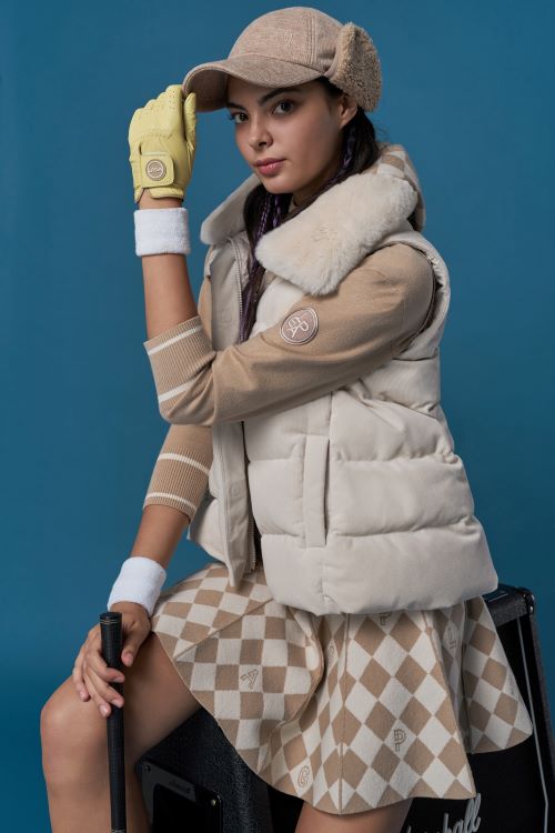 ‘PGA TOUR & LPGA’ 골프웨어의 에리 퍼 다운점퍼 역시 여성스러운 벌룬형 실루엣과 탈착이 가능한 카라 배색 퍼로 디자인 요소를 강조했으며 구스다운 충전재를 사용해 일상에서도 멋스럽게 입기 좋다.