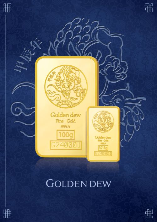 갑진년을 맞아 ‘골든듀’에서 특별 제작한 용 골드바 2종은 모두 24K 순금 소재이며 100g/37.5g 총 두 가지 중량으로 출시한다. 어미용과 새끼 용이 마주보는 모습이 S자 모양으로 이어져 있고 이는 동양의 태극 문양을 함께 표현했다. 태극 문양은 만물을 생성시키는 우주의 근원을 상징하며 청룡의 의미와 함께 어우러져 새해를 맞이해 시작하는 모든 일이 잘 풀리기를 기원하는 의미를 더한다.