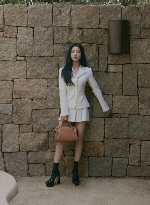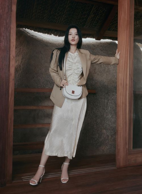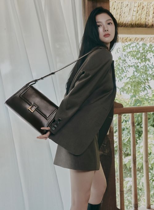 실키한 원피스에 자켓을 더한 페미닌한 룩에는 라운드 쉐입의 플랩백과 사선 절개 라인이 돋보이는 숄더백을 각각 매치하며 김유정만의 도회적인 매력을 가감없이 드러냈다.