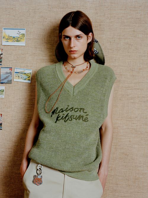 ‘메종키츠네’는 핸드라이팅 로고가 반영된 카키 그린 멜란지 컬러의 오버사이즈 베스트와 폭스 헤드 패치 폴로 티셔츠 등을 출시했다.