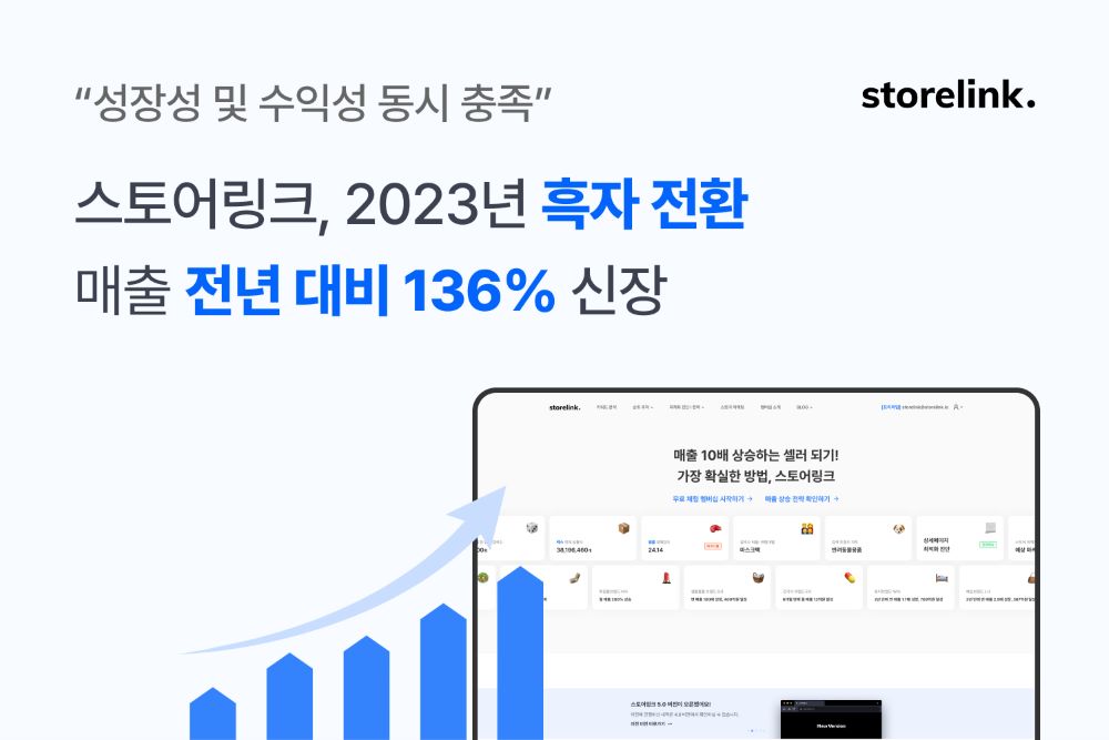 스토어링크는 지난해 세 자릿 수 이상의 매출 성장과 함께 흑자 전환에 성공했다고 9일 밝혔다. 2023년 매출액은 약 400억원으로 2022년 동기 대비 136%가량 증가했고 기업 설립 연도인 2020년부터 지난해까지 연평균성장률(CAGR)은 215%에 달한다. 매출 상승과 더불어 당기순이익이 크게 증가하면서 2023년 2분기부터는 영업이익도 흑자세로 돌아섰다.