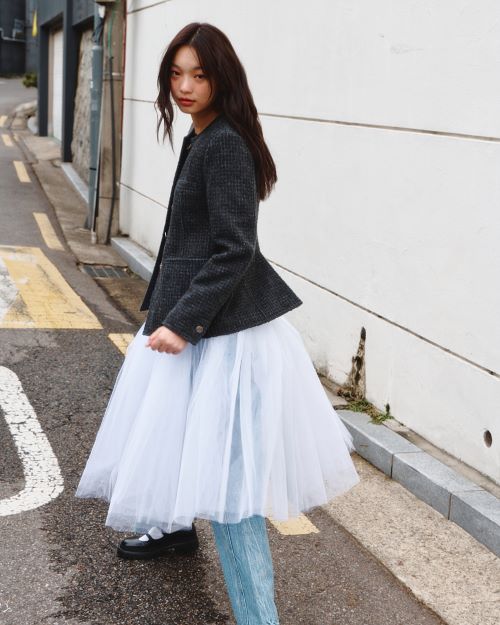 또 슬림한 실루엣의 레이어링 볼륨 롱 드레스와 경쾌한 기장의 울 재킷을 조합하거나 연핑크 컬러의 트위드 재킷과 스커트를 더해 미니멀하면서도 세련된 무드의 스타일링을 연출했다.