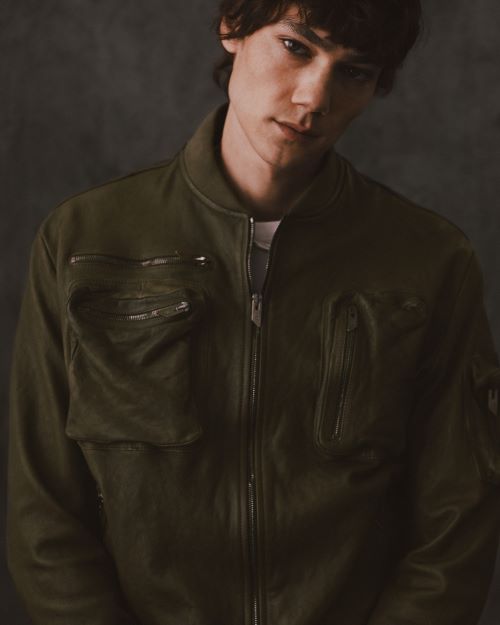 포레스트 그린 컬러의 점퍼 스타일인 레더 재킷은 양쪽 가슴과 측면에 두 개의 포켓이 디자인이 되어 개성을 더한 캐주얼함은 물론 데일리룩에 스포티한 라이프 스타일로 멋짐을 더할 수 있다. 가격 2백만원대