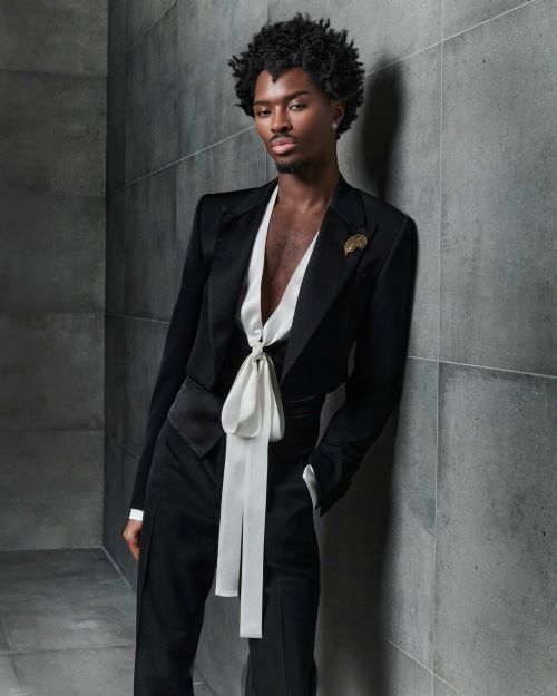 로운은 2024 봄-여름 남성 컬렉션에서 화이트 플라워로 화려하게 장식된 스트라이프 셋업 룩을 선택해 우월한 자태를 뽐냈다. DPR IAN은 대담하고 관능적인 무드의 도트 패턴 시스루 셔츠에 실루엣을 강조하는 허리 밴드를 더해 그만의 고혹적인 아우라를 담아냈다.