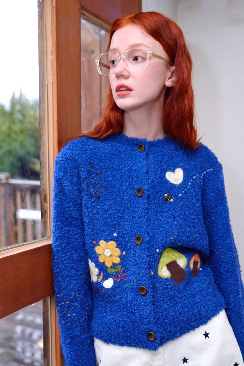 이번 시즌 2024 대세로 떠오르는 트렌드인 긱시크 무드와 어울리는 복고풍 스타일을 엿볼 수 있는 독특한 질감의 니트, 사랑스러운 자수 디테일이 입혀진 어패럴과 잡화들로 구성했다.