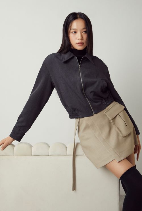 새롭게 출시한 블루종 점퍼는 레이온 혼방의 트월 조직을 사용하여 은은한 광택과 부드러운 질감이 특징이며 밑단에 이중 밴드로 볼륨 있는 핏을 살려 귀엽고 캐주얼한 무드를 표현했다.