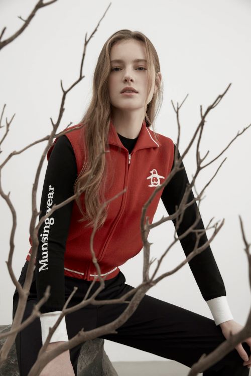 블랙과 레드 컬러 조합으로 전체 착장에 강렬함을 더하는 라인도 있다. 여성용 클래식 니트 풀 집업 베스트는 톤 다운된 레드 컬러가 특징으로 이너웨어 컬러만 바꿔 입으면서 스타일리시한 라운드 코디가 가능하다. 칼라는 펼치거나 지퍼를 끝까지 올려 취향 것 스타일링할 수 있다. 부클 자수의 펭귄 로고가 감각적이고 지퍼에 레드 컬러의 고무 디테일을 더한 섬세함이 돋보인다. 도톰한 두께감이라 일교차 심한 간절기에 적합하다.