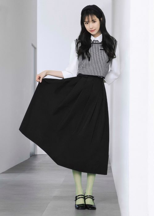 이 밖에도 데님 셔츠를 레이어링한 트렌치코트는 탈부착 가능한 카라 디테일을 포인트로 간절기부터 봄까지 활용하기 좋은 아이템이다. 이에 플리츠 미니 스커트를 함께 매치해 감각적인 스타일링을 완벽하게 소화해냈다.