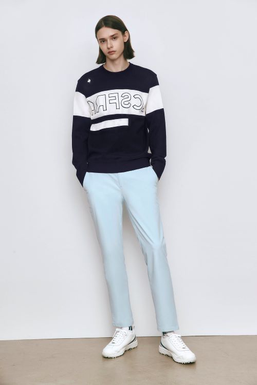 남성용 주력 제품인 ‘트윌 패턴 라운드 스웨터’는 르꼬끄골프에서 자체 개발한 패턴으로 개성을 더했다. 패턴 간의 톤온톤 조합으로 감각적인 필드 룩을 완성한다. 자카드 직조 기법이 사용돼 두께감이 도톰하고, 실루엣도 입체적이고 고급스럽다. 필드뿐 아니라 일상에서 입기에도 제격인 스웨터이다.