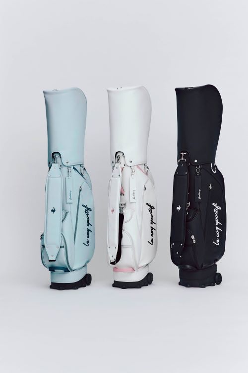 신상품인 스탠드 캐디백은 트롤리까지 장착되어 편리성을 높였고 형태 변화나 구김이 없는 고급 합성 피혁 소재에 어깨 쿠션 끈으로 무게를 분산시키고, 입구는 5분할 파티션과 다양한 사이즈의 넉넉한 수납공간을 갖췄다. 블랙, 화이트, 민트 등 3가지 컬러가 있다.