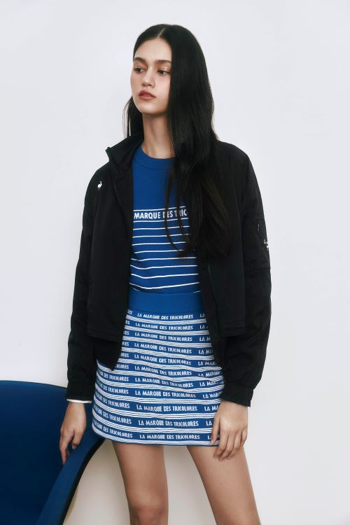 여성용 주력 제품인 ‘스웨터 우븐 하이브리드 점퍼’는 우븐 직조의 신축성 몸 판과 니트로 직조한 팔 부분의 서로 다른 소재 믹스 매치가 돋보이는 하이브리드 자켓이다. 은은한 광택과 탄탄한 조직의 자켓이라 입었을 때 형태감이 살아있어 스포티함이 물씬 풍긴다. 굵은 스트라이프로 포인트를 줬고, 뒤면에 레터링으로 포인트를 줬다. 컬러는 블랙, 네이비 2가지가 있다.
