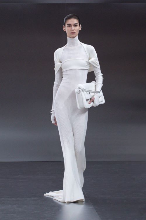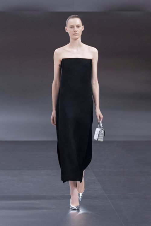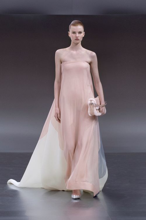 이번 시즌에 새롭게 선보이는 스카톨라 실루엣은 상자를 의미하는 단어로 컬렉션은 이 스카톨라 실루엣으로 시작해 이와 동일하게 정교하고 기하학적 패턴 커팅이 돋보이는 플루 스타일로 막을 내린다. 실크 가자르와 같은 패브릭을 사용하여 가벼움과 구조가 모두 돋보이는 새로운 볼륨감을 연출한 것이 이번 컬렉션의 특징이다.