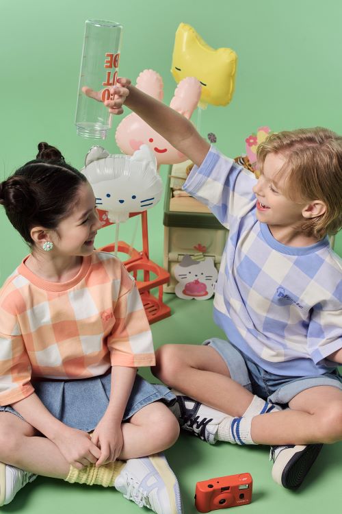 ‘버터샵’의 아기자기한 무드를 담은 깅엄 체크 패턴과 다채로운 컬러를 담은 의류와 가벼운 나들이에 적합한 피크닉 백 등으로 통통 튀는 키즈룩을 제안했다.