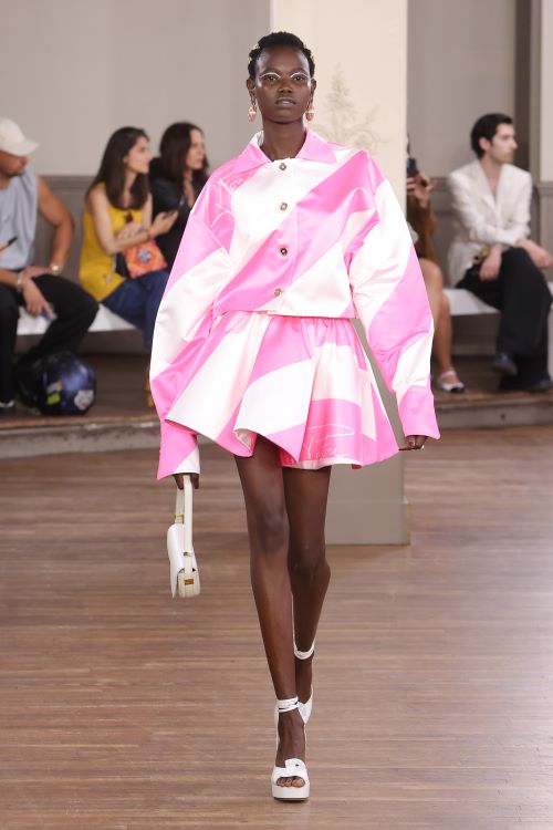 프랑스 럭셔리 디자이너 브랜드 ‘빠투’의 컬렉션에서도 걸코어 무드가 강조됐다. 여성스러운 곡선을 강조한 경쾌하고 걸리쉬한 스트라이프 패턴, 리본, 셔링 디테일의 아이템들이 돋보인다.