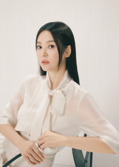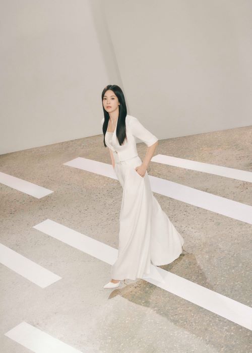 화보 속 송혜교는 다양한 컬러의 셋업, 소재감이 돋보이는 여성스러우면서도 우아한 블라우스와 스커트를 착용하여 산뜻한 봄의 감성을 세련되게 표현했다.