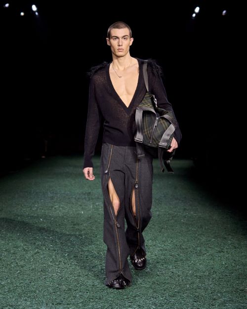 백과 슈즈는 기능적이고 ‘버버리’ 아카이브에 기반한 아이코닉한 브랜드 모티프를 담아냈다. 스카프와 레이어링은 뉴트럴하거나 얼씨 계열의 색상으로 자연의 느낌을 자아낸다.