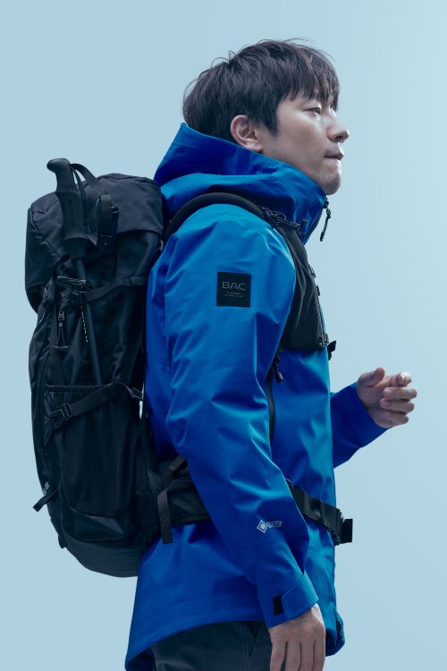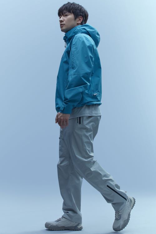 또 다른 착장 제품 ‘노카엔 GTX 3L 자켓’은 고어텍스 소재를 사용한 3레이어 구조의 후드 일체형 자켓이다. 방수와 발수, 그리고 방풍 기능을 고루 갖췄을 뿐 아니라 벤틸레이션 디테일을 통하여 우수한 통기성을 전달하는 고기능성 봄 바람막이다. 가슴 부위에 있는 ‘블랙야크’만의 이중 구조 벤틸레이션 지퍼는 위쪽으로 열면 통기성을 높이고 아래쪽으로 열면 주머니로 사용 가능해 높은 수납력을 자랑한다. 손석구는 청량한 블루 컬러를 착용했다.