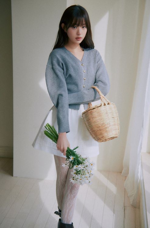 차분한 그레이 컬러의 V넥 가디건과 화이트 볼륨 스커트를 매치한 스타일은 장원역 특유의 로맨틱한 매력을 여과없이 드러내었으며 크롭 기장의 블루 컬러 가디건과 부츠컷 생지데님을 매치한 룩은 고혹적이면서도 성숙한 매력을 마음껏 발산하였다.