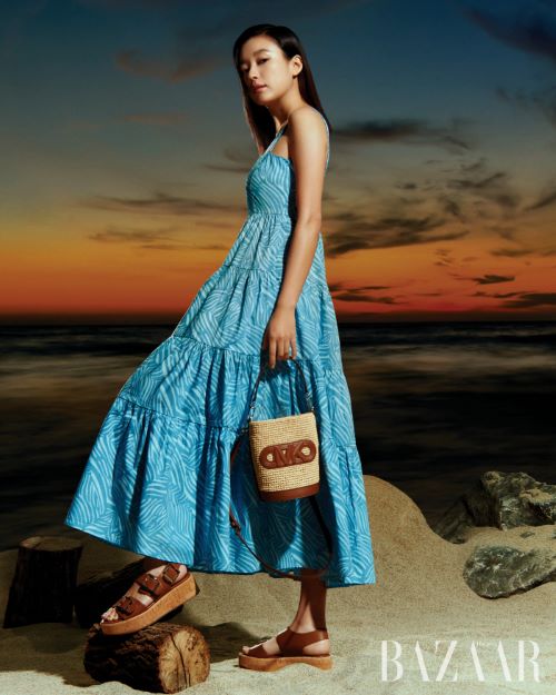 시크한 스타일과 세련된 무드가 담긴 이번 봄 시즌의 화보에서 한효주는 붉은 노을이 지는 해변을 배경으로 하여 다채로운 룩을 소화해 내며 새로운 매력을 발산했다. 여기에 ‘마이클 코어스’에서 선보이는 다양한 아이템을 활용해 독보적인 비주얼을 다시 한번 보여주었다.