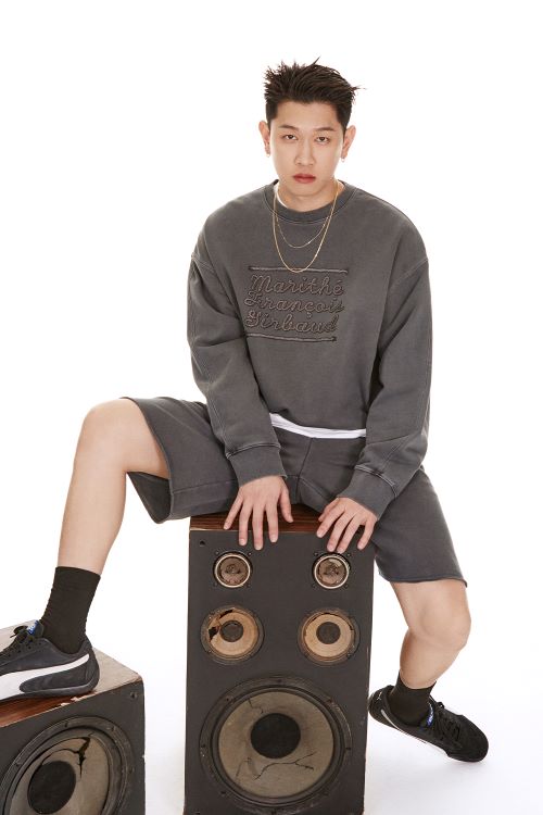 이외에도 빈티지 다잉 스웨트 셔츠 셋업을 착용하고 강렬한 눈빛으로 카메라를 응시, 크러쉬 특유의 칠한 무드로 재해석한 새로운 ‘마리떼 프랑소와 저버’를 선보였다.