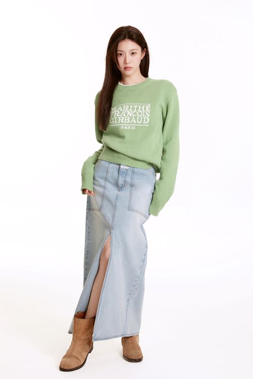 특히 ‘마리떼 프랑소와 저버’의 아이덴티티가 담긴 클래식 로고 니트에 맥시 데님 스커트를 매치해 우아한 무드를 선사하기도 했다.