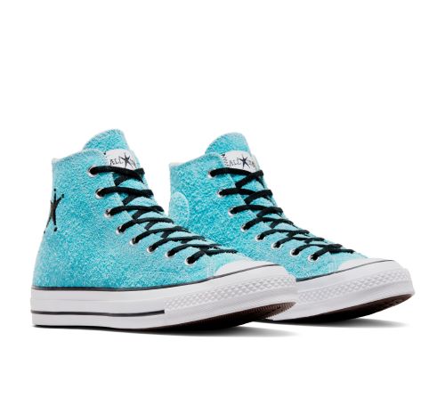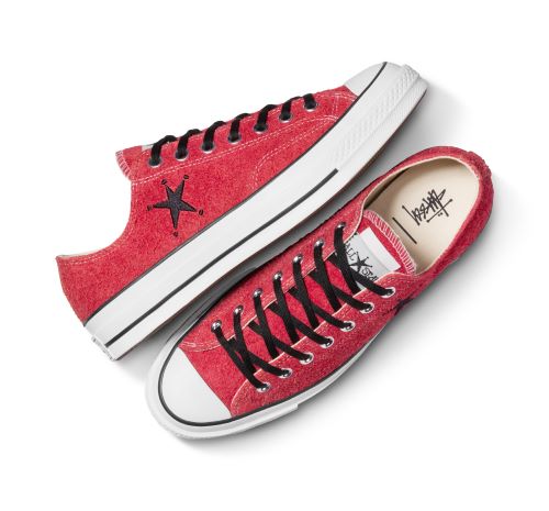‘컨버스 X 스투시’ 척 70는 1990년대 스타일의 거친 헤어리 스웨이드 소재의 어퍼와 클래식 척을 연상시키는 무광 폭싱의 조합으로 탄생했다. 기존의 척 테일러 앵클 패치 대신 ‘스투시’의 유명한 스타 그래픽 요소가 더해진 커스텀올스타 패치가 적용된 것이 특징이다.