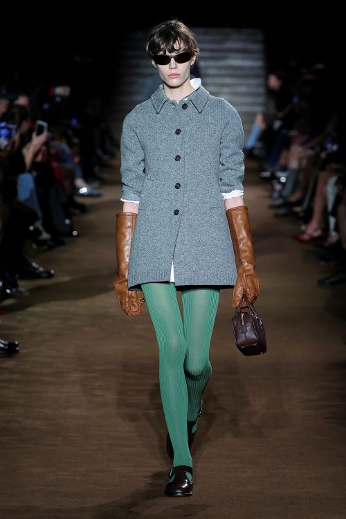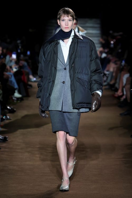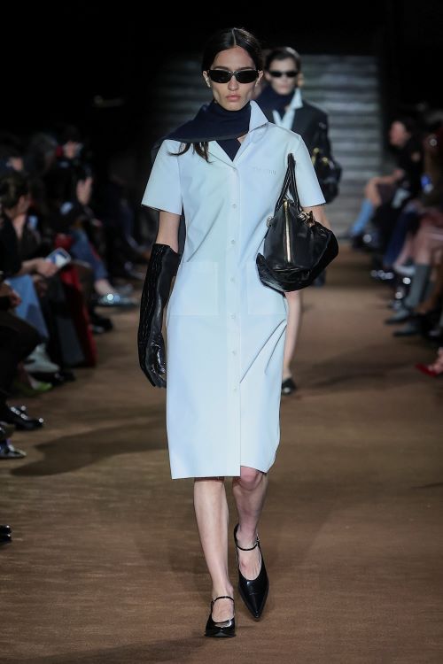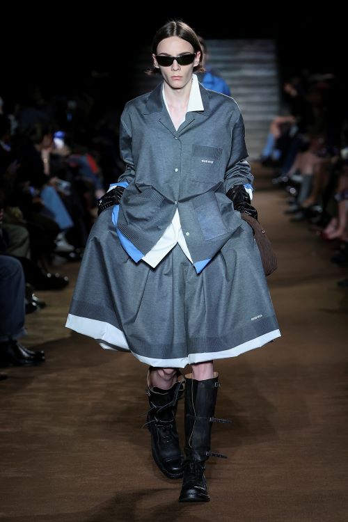 이번 미우치아 프라다의 ‘미우미우’의 컬렉션은 인생의 다양한 경험과 시기에서 영감을 받았다. 다채로운 삶의 순간들을 담아냈으며 어린 시절의 감회는 의도적으로 축소된 비율, 짧은 소매, 둥근 코 신발과 같이 어릴 때 입었던 옷들의 전형적인 특징을 나타낸다.