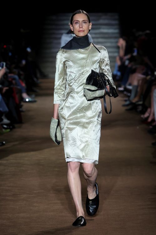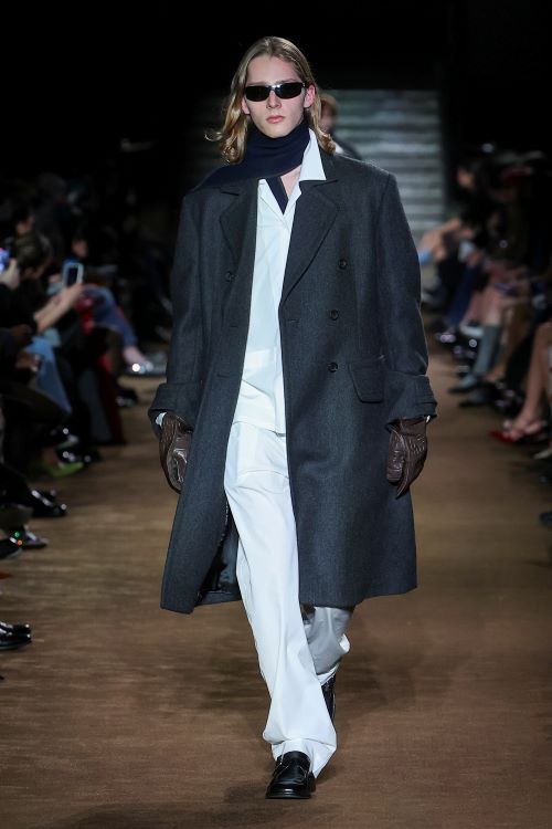 소재와 구조에서도 이중성과 과거에 대한 회상에 상응하는 요소들을 만나볼 수 있다. 결합과 융합은 다양한 원단을 이어주며 실크와 캐시미어 소재의 스웨터와 카디건, 포플린 스커트와 니트 등의 서로 다른 의류의 조화로운 만남을 보여준다.