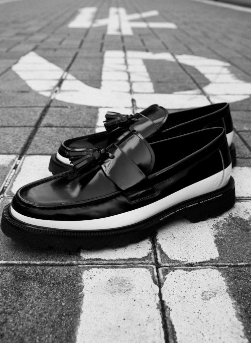 이번 콜라보 한정판 제품은 남성 로퍼 라인 3종이다. 천연의 결을 살린 프리미엄 풀 그레인 가죽 소재에 포멀한 실루엣과 대조되는 스트리트 패션 디테일이 가미돼 소장 가치를 높였다. 화이트 컬러와 블랙 컬러의 선명한 대비감, 스트라이프 패턴, ‘프라그먼트’만의 독특한 더블 번개 장식, 페니 로퍼 슬롯 안쪽에 자리잡은 로고 등 ‘프라그먼트’ 특유의 개성이 드러난다.