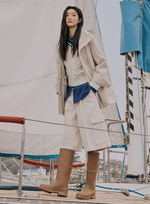 ‘빈폴레이디스’는 올봄 항해를 컨셉으로 배의 돛에서 착안한 에크루 컬러를 활용했다. 부드러운 느낌의 아이보리 후드 사파리 아우터와 와이드 팬츠 착장에 같은 색감의 스웨터를 매치해 편안한 분위기를 연출하고 블루/네이비/데님 아이템으로 포인트를 줘 마치 마린룩을 연상케 하는 봄 스타일링을 완성했다.