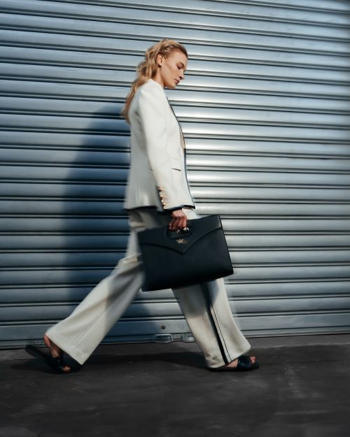 스페니쉬 송아지 가죽 다이아몬드 숄더백 역시 바이에른 다이아몬드에서 영감을 받은 스페인산 송아지 가죽 소재 숄더백이다. ‘형태는 기능을 따른다(form follows function)’라는 바우하우스 디자인 원칙에 충실한 기하학적 모티프가 앞면 플랩 클로저에 정교하게 퀼팅된 것이 특징이다.