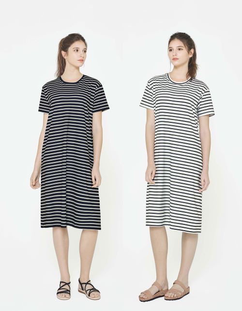 ‘BYC’ 이지웨어는 면 100% 천연소재에 스트라이프 패턴과 루즈한 핏의 반팔 원피스 제품이다. 촉감이 부드러워 쾌적하고 면 특유의 뛰어난 흡수력과 통기성으로 위생적이며 오랜 야외 활동에도 편하게 착용할 수 있다.