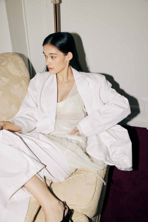 단독으로 착용하거나 함께 출시된 코튼 로우 컷 와이드 팬츠 제품과 함께 셋업으로 입을 수 있어 다양한 무드로 데일리룩에 활용하기 좋은 자켓이다.