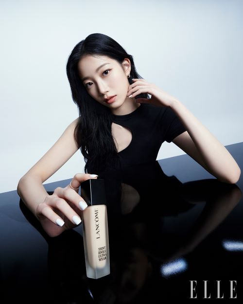 이날 카즈하는 공기를 입은 듯 가볍게 밀착되는 ‘랑콤’ NEW 뗑 이돌 울트라웨어 롱라스팅 파운데이션을 바르고 카메라 앞에 섰다.