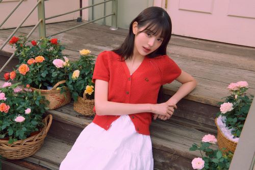 또한 장원영의 매력을 끌어 올려주는 청순한 화이트 원피스에 레드 컬러의 하프 카디건을 매치해 산뜻하고 생생한 활기를 불어 넣었다.